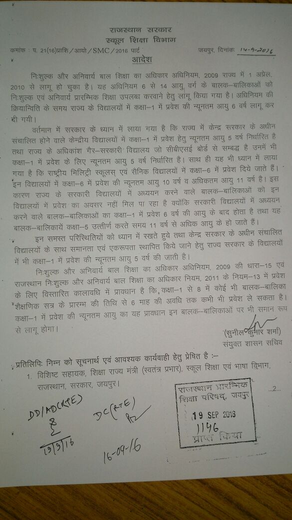 नये प्रवेश हेतु उम्र 5 वर्ष है या 6 वर्ष इस हेतु महत्वपूर्ण आर्डर-